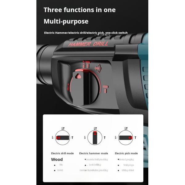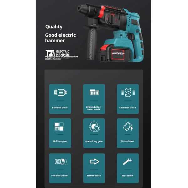 The electric hammer has a mild soft start characteristic, avoiding the impact of sudden large torque, and the user can better control the tool and reduce the possibility of accidents.