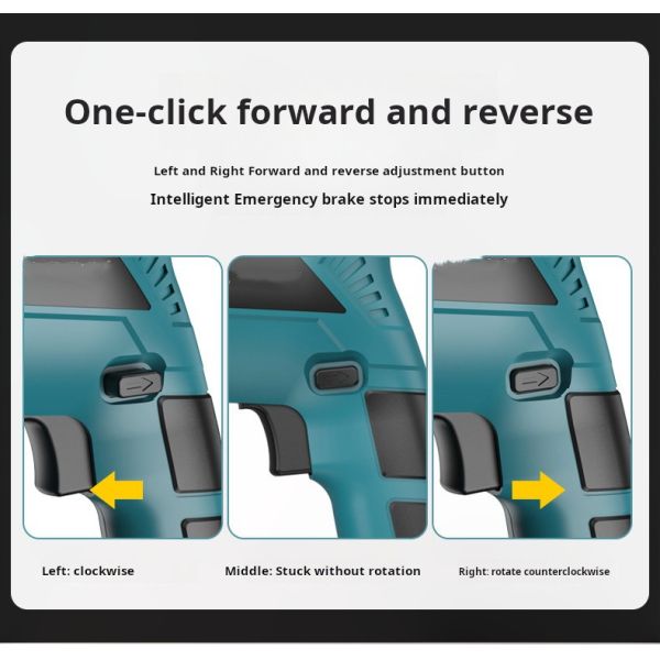 The electric hammer uses a patented anti-recoil design to effectively absorb the impact force, significantly reducing the reaction force transfer when the drill bit is stuck, and reducing the risk of arm injury to the user.